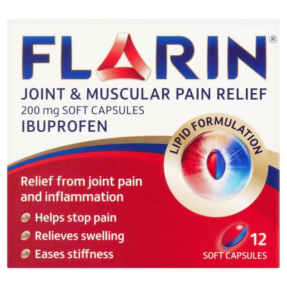 Indications: Flarin 200mg Soft Capsules are indicated for the relief of mild to moderate pain, including joint and muscular pain, back pain, period pain, dental pain, and headaches.
